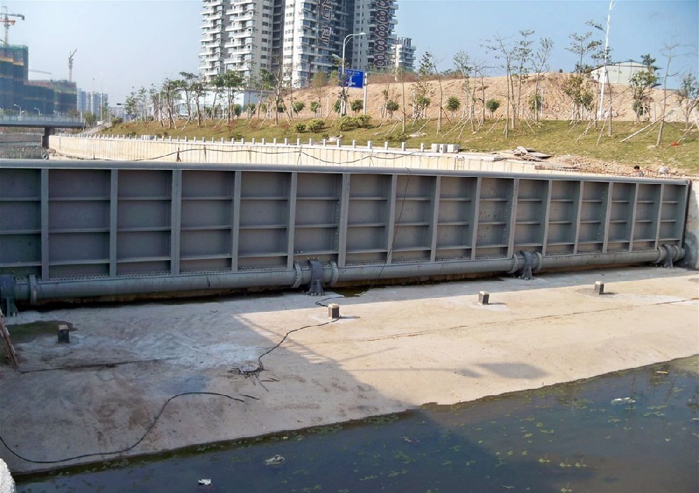 液壓翻板閘門又稱為液壓壩是一種采用液壓系統(tǒng)控制原理和自卸汽車力學(xué)原理,結(jié)合支墩壩水工結(jié)構(gòu)型式的新型活動壩,具備擋水和泄水雙重功能??梢宰詣有购?在出現(xiàn)山洪暴發(fā)等*狀況下能夠及時泄洪,對下游不造成過大沖擊。